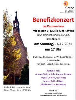 14.12.2025 um 17:00 Uhr. Kirche St. Heinrich und Kunigunde, Simon Meister Straße 1, 50733 Köln Nippes.